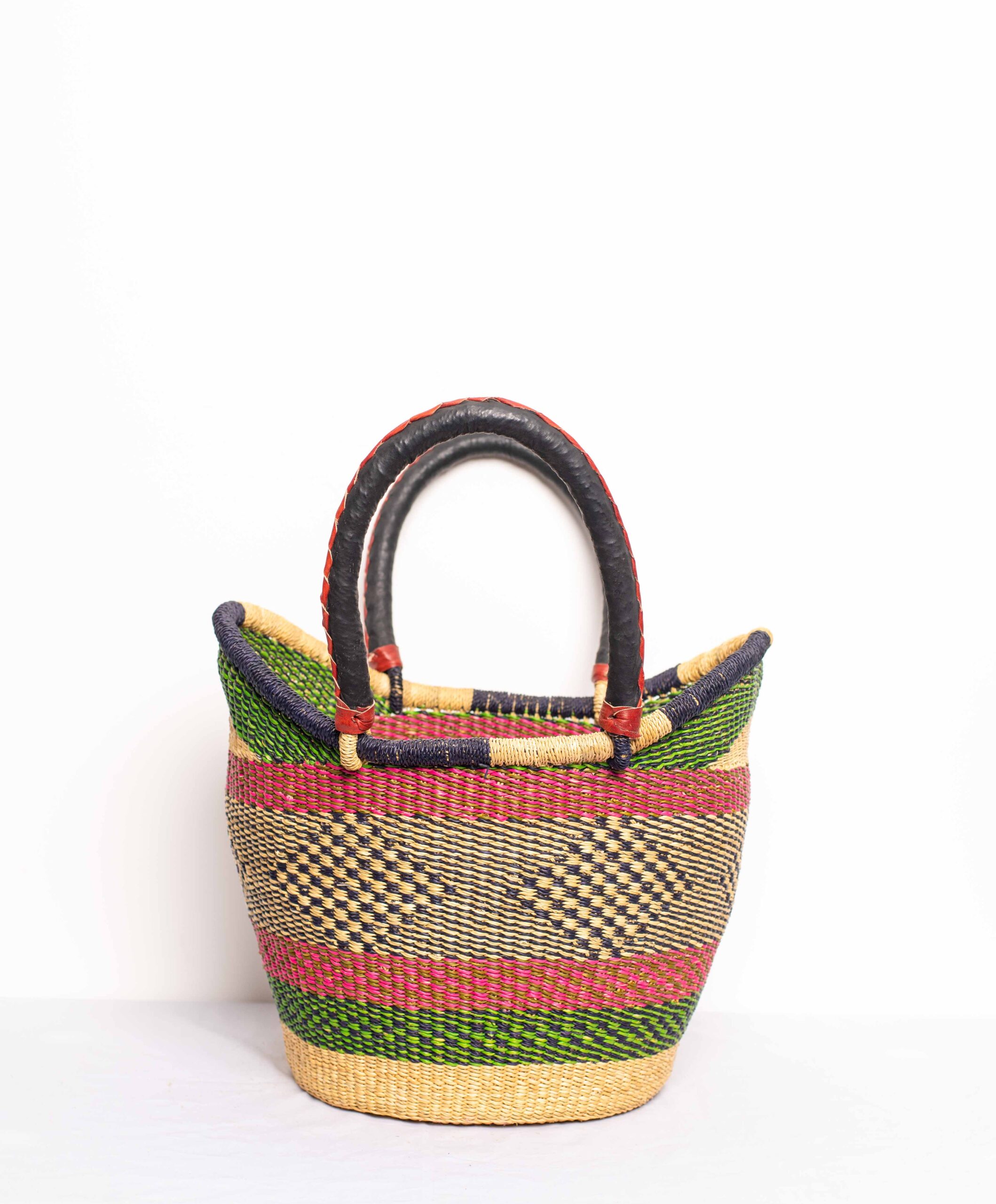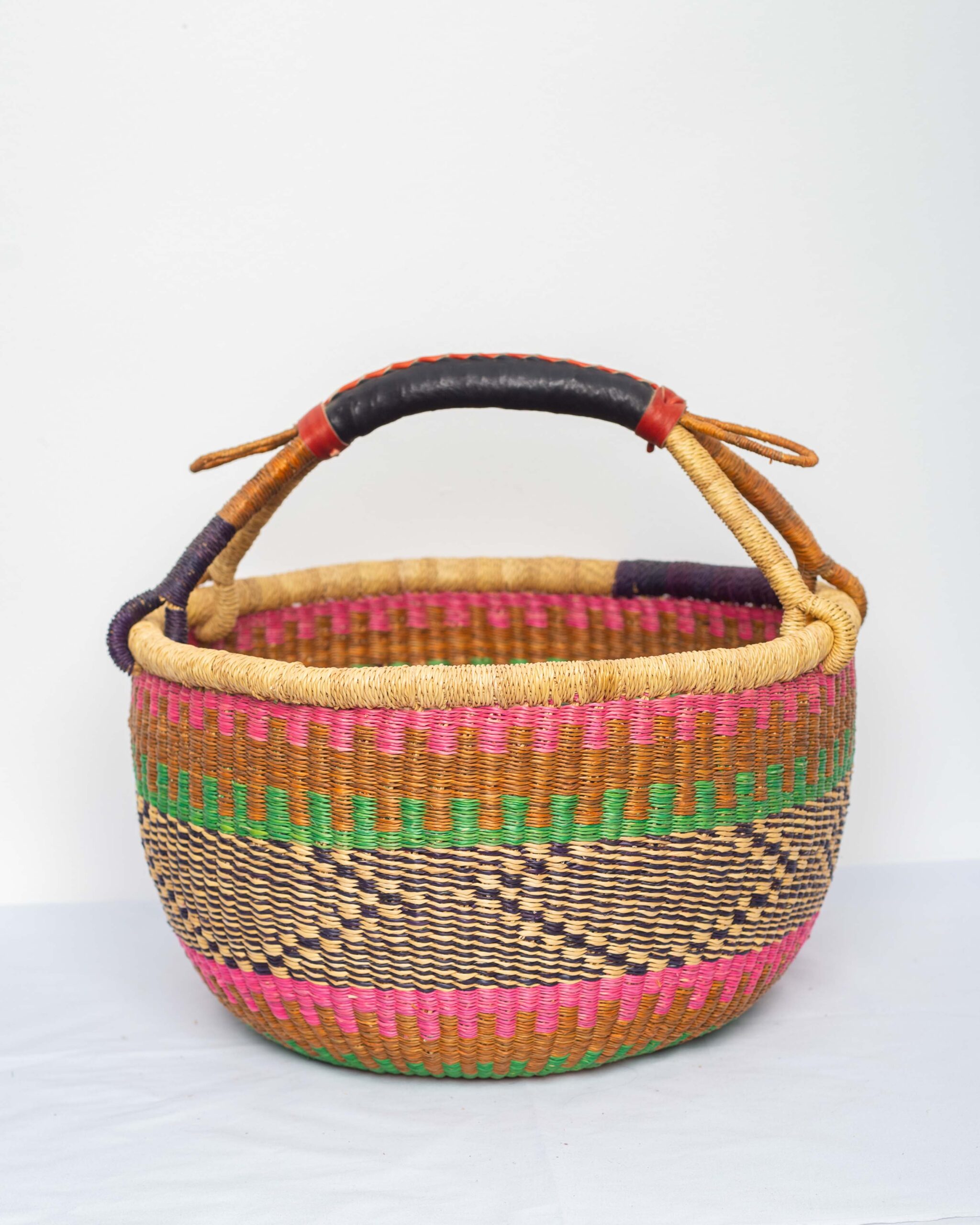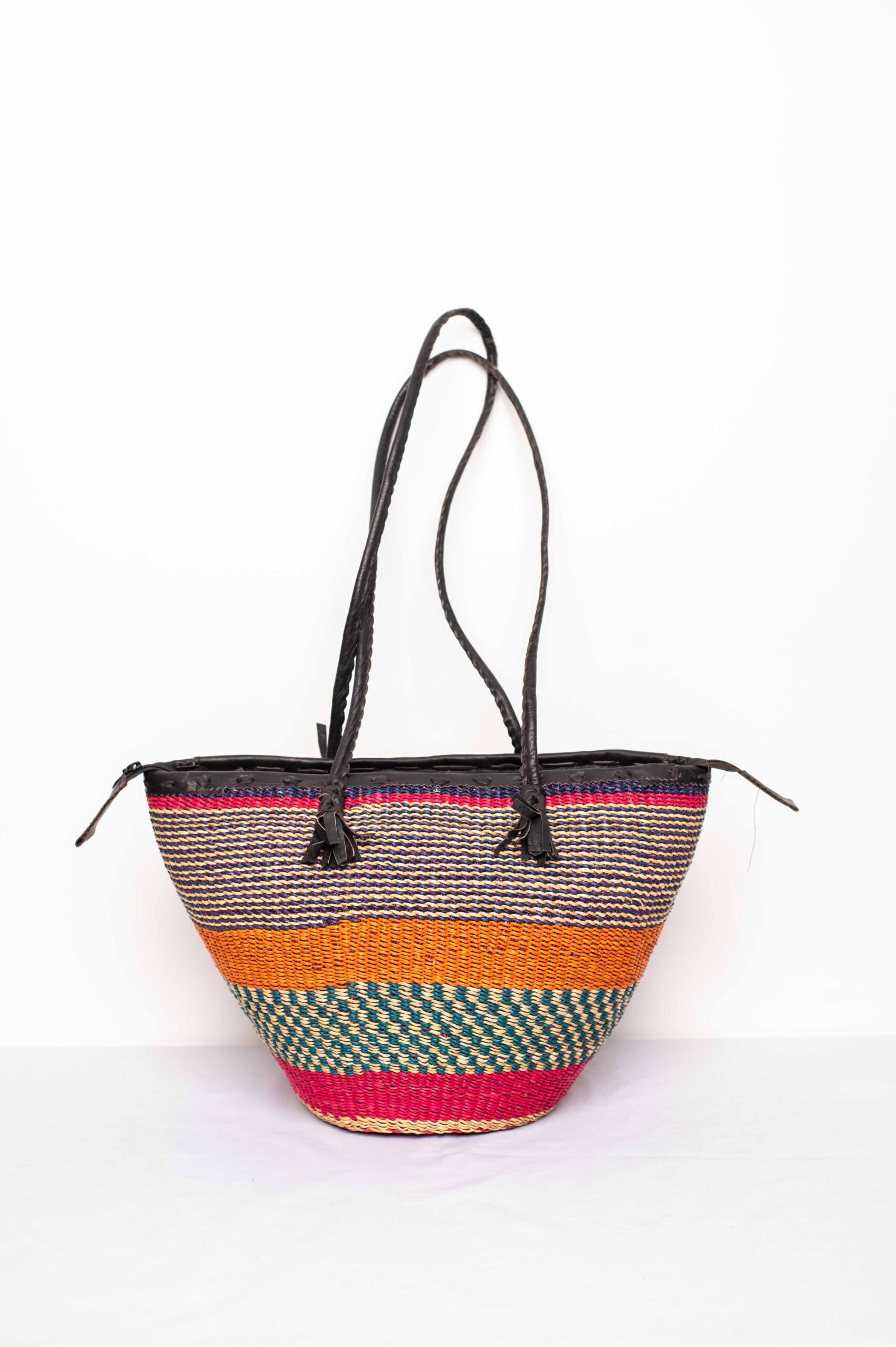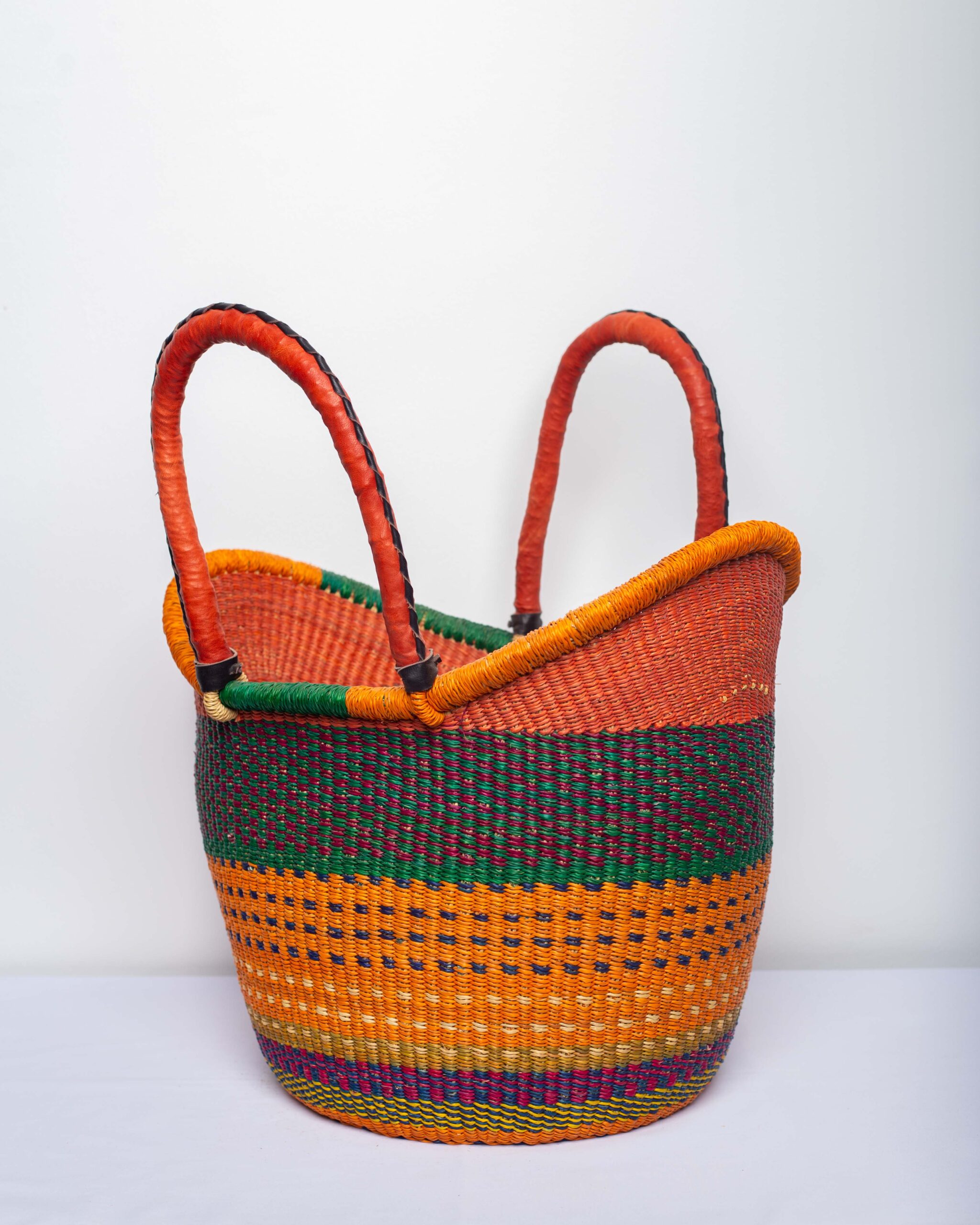 Discover our collection of Bolga baskets, handwoven from native elephant grass and featuring vibrant, hand-dyed colors. Perfect for shopping, storage, or as a distinctive home decor piece.