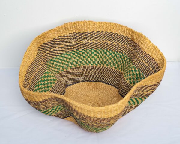 Basabasa bowls are both functional and are beautiful for display as a piece of home decor. These unique bowls bring traditional craft to a modern context. Each basket is unique so dimensions will vary. Large basabasa bowls measure approximately 21″ in Diameter by 7″ Deep. Thank you for your support – 10% of your purchase will go back to the artisans to benefit their community!