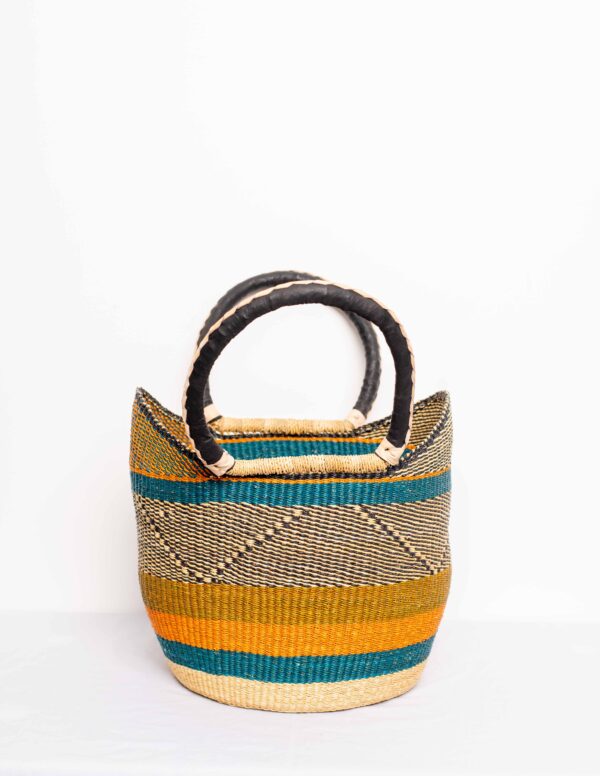 These hardy, useful baskets are a great gift and have multiple uses! Use it for storing blankets or throws or leave it in your car for travel necessities. Great for toy storage too! Dimensions: Since each basket is unique, the dimensions vary, but the large U Shoppers are approximately 12.5″ W x 12.5″ D x 18.5″ L.