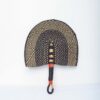 Fans are handwoven from elephant grass. Handles are leather and hand stitched. Sizes will vary since each is one of a kind . Genrally the dimensions are approxmately 18.5″ long (from top of fand to end of handle) and 13″ wide. Thank you for your support – 10% of your purchase will go back to the artisans to benefit their community!